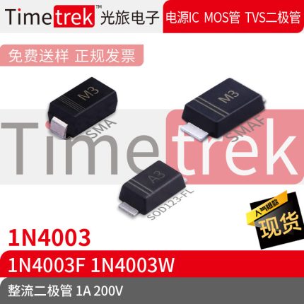 Timetrek 整流二极管 1N4003 1N4003F 1N4003W 200V 1A 丝印M3 A3